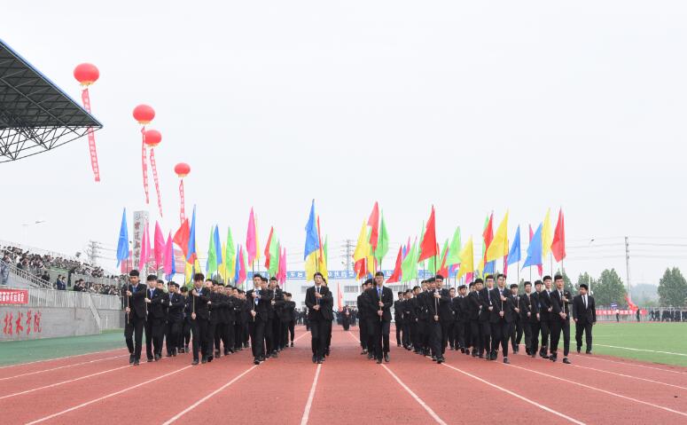 随着《运动员进行曲》的奏响,国旗队护送着鲜艳的五星红旗缓缓入场,校旗队、标语牌、彩旗队和鲜花方队紧随其后。信息学院、信息基础学院、互联网系、文理学院、外语学院、女子学院的方阵依次入场,接受主席台的检阅。师生们眼神坚毅、口号嘹亮,整齐划一的动作、铿锵有力的步伐,彰显出职院师生朝气蓬勃的精神面貌和顽强拼搏的精神。