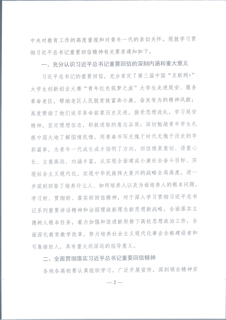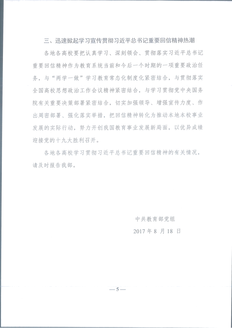 中共教育部党组关于学习贯彻习近平总书记给第三届中国“互联网+”大学生创新创业大赛“青年红色筑梦之旅”大学生重要