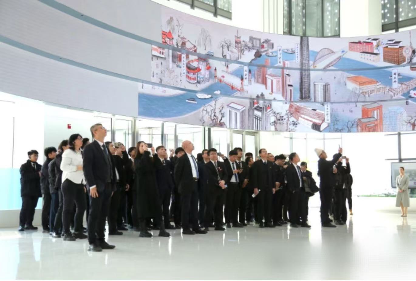 踏入联想天津未来中心的瞬间,穹顶垂落的数字星河仿佛裹挟着同学们跃入了时空虫洞。