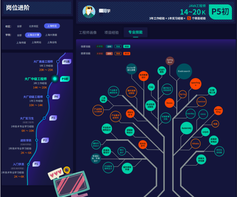 开发者能力追踪地图,AI给你画出五边形战士成长路径: