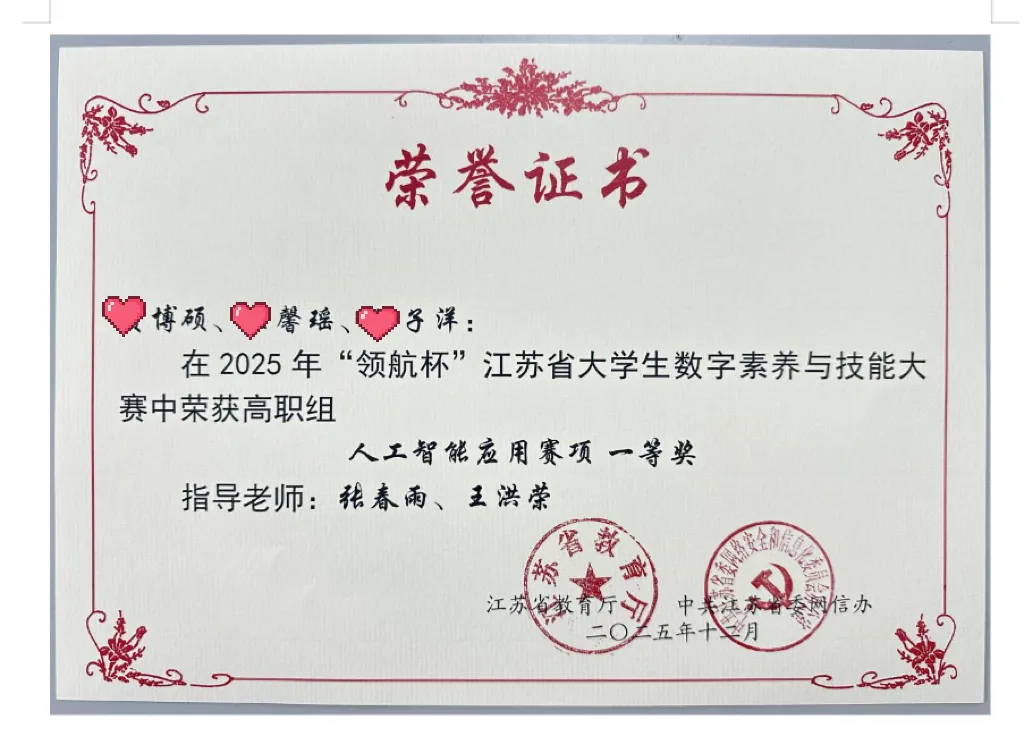 喜报·热烈祝贺全球网络赌博平台在2025年“领航杯”江苏省大学生数字素养与技能大赛人工智能应用赛项中荣获一等奖!