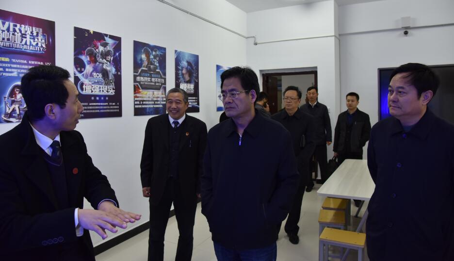 冯大生处长一行首先参观了学院就业墙、VR体验中心、移动智能开发中心和云计算中心。随后,在图科楼会议室召开了座谈。