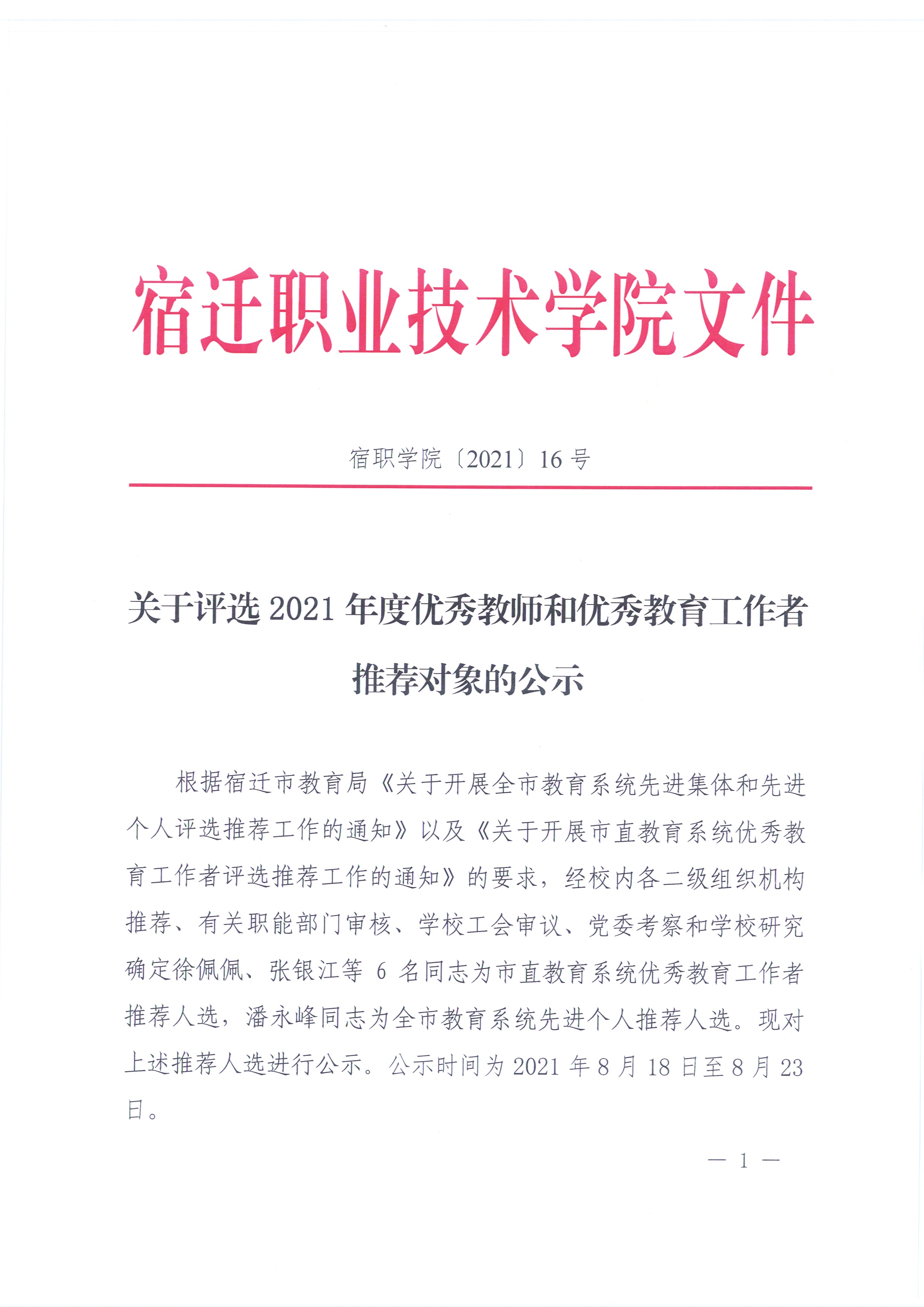 关于评选2021年度优秀教师和优秀教育工作者推荐对象的公示 - 通知公告 - 全球网络赌博平台