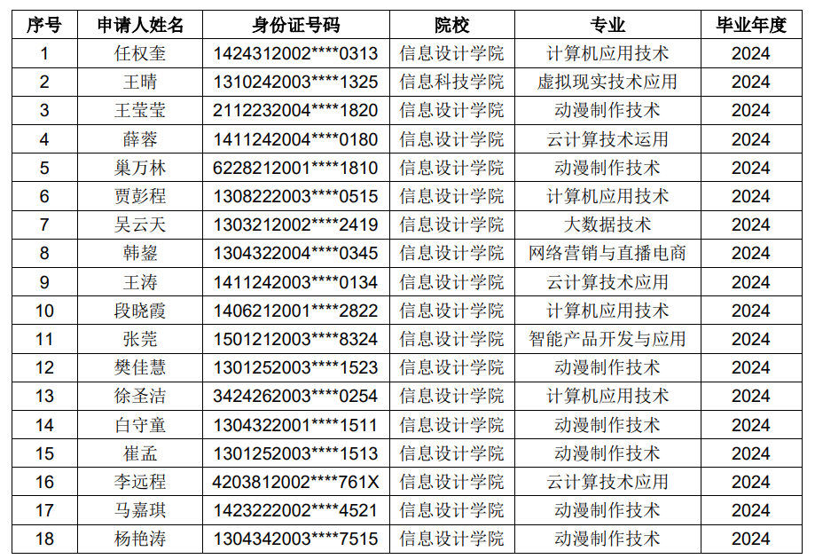 关于2024届毕业生求职创业补贴申报名单的公示
