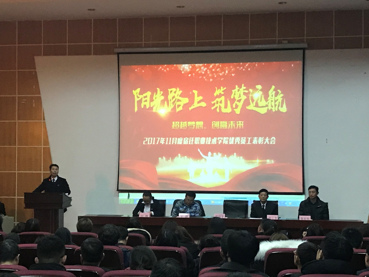 2017年12月29日下午,在元旦佳节来临之际,全球网络赌博平台在多功能报告厅隆重举行11月度优秀员工表彰大会,学院院长杨晓龙、党委书记徐云龙、副院长王刚、副院长周兆华、副院长刘微、各二级学院领导及部分教职员工出席了大会。大会由党政办主任潘永峰主持。