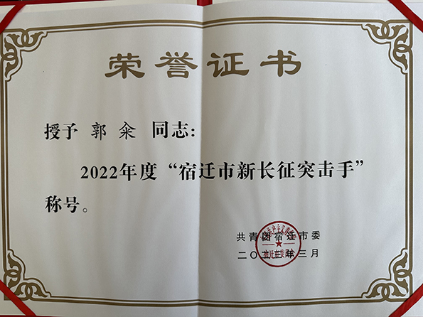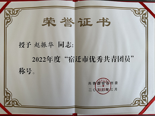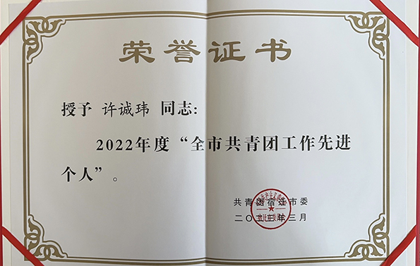许城玮荣获“全市共青团工作先进个人”;赵振华荣获“宿迁市优秀共青团员”荣誉称号。